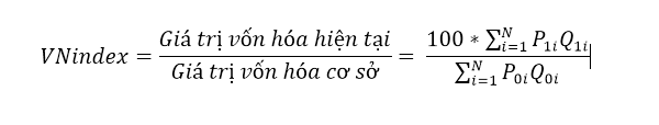 Chỉ số VN-Index được tính theo phương pháp bình quân gia quyền của toàn bộ các cổ phiếu trong rổ tính toán so với phiên giao dịch gần nhất hoặc so với ngày gốc và được tính theo điểm. Cụ thể: