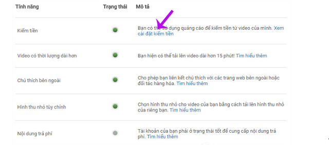 - Click chọn vào mục “Xem cài đặt kiếm tiền”