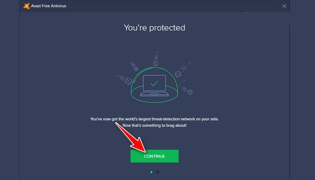 Khi quá trình cài đặt hoàn tất, bạn hãy mở phần mềm Key Avast Premier 2019 có ở trên máy tính của mình. Lúc này màn hình giới thiệu phần mềm sẽ xuất hiện. Bạn hãy nhấn nút lệnh Continue để tiếp tục quá trình cài đặt.