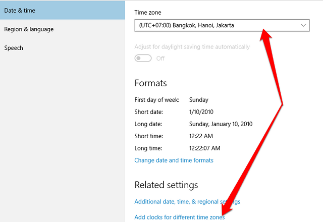 Bước 2: Chọn Change Time Zone. Chọn time zone về Bangkok, Hanoi, Jakarta.